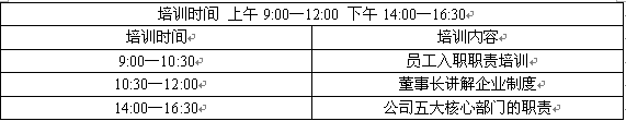 培訓時間一天,內容包括:辦公室、財務、網絡、客服、業務(計調、前臺、導游)培訓,企業制度培訓等。上午是《聊之旅員工入職職責》的培訓,從員工試用期開始到正式簽訂工作協議,對職業準則以及員工行為準則都進行了詳細地說明,員工所關心的的薪酬問題、績效問題也在文件中提及。