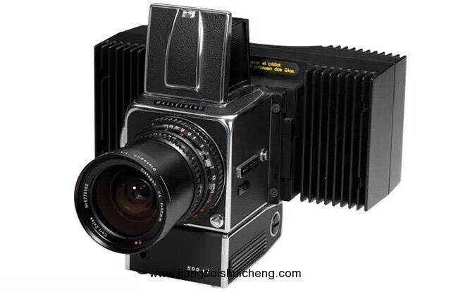 圖中這臺安置在一臺 Hasselblad 500EL 相機上。可拍攝黑白照片,或者通過鏡頭前固定的機械化過濾器轉輪分別用紅、綠、藍色三片濾鏡曝光后再合成一幅全彩照片。