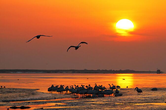 拍攝煙墩角日出,天鵝,宿成山鎮