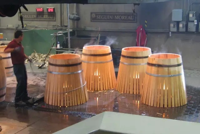 經過烘烤的橡木條更容易彎曲成桶,此外,經過烘烤后的橡木桶,有利于陳釀的酒液從中獲取更多的風味。而經過不同程度烘烤的橡木桶,會給葡萄酒帶來不同的風味:輕度烘烤的橡木桶,桶壁的顏色改變很小,在其中陳釀的葡萄酒香氣不會受很大影響,仍是果香充沛,但能從橡木中萃取較多的單寧;中度烘烤的橡木桶,桶壁顏色變得更棕,單寧相比于前者會比較柔和,果香中還能透露出香草或咖啡的醇香;重度烘烤的橡木桶,桶壁顏色非常深,甚至已經出現烤焦層,這樣酒液獲取的單寧很少,更多的是濃郁的煙熏、咖啡、豆蔻等辛香味,整體風格是圓潤順滑的。