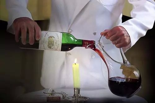 1、把葡萄酒從一個醒酒器倒入另一醒酒器中,然后重復一兩次這個動作;