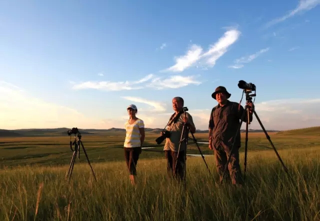 看到主人公的到來,攝影師們興奮異常。老王駕輕就熟地跟攝影師們交涉起來,向他們介紹大片拍攝最佳的時間和角度。
