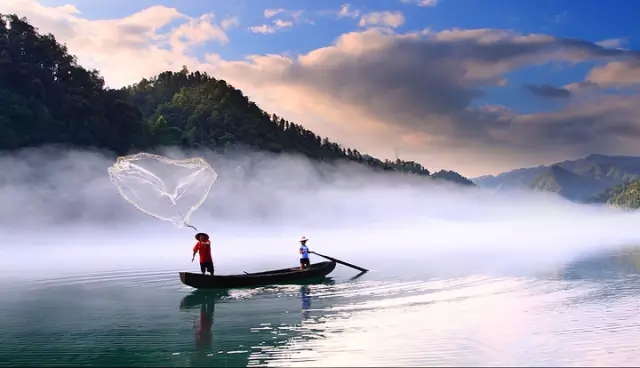值得一提的是,捕魚大叔由于要劃船和撒網,不能很好的控制調度。和攝影師商榷之下,一項神奇而偉大的通訊工具被運用到中國攝影擺拍事業里——對講機。