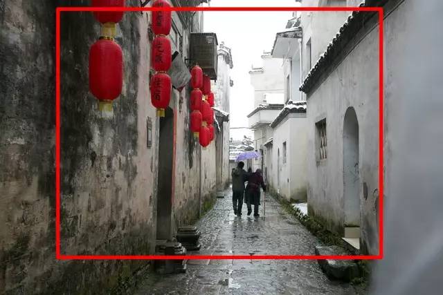 點評:濕漉漉的青石板路,巷子邊上的引導線把觀眾的視線引到畫面中心的兩人身上,大紅燈籠更是點綴了整幅作品的基調(diào)。只是右側(cè)白墻的虛影擾亂視線,可剪裁掉,使畫面中心更突出。