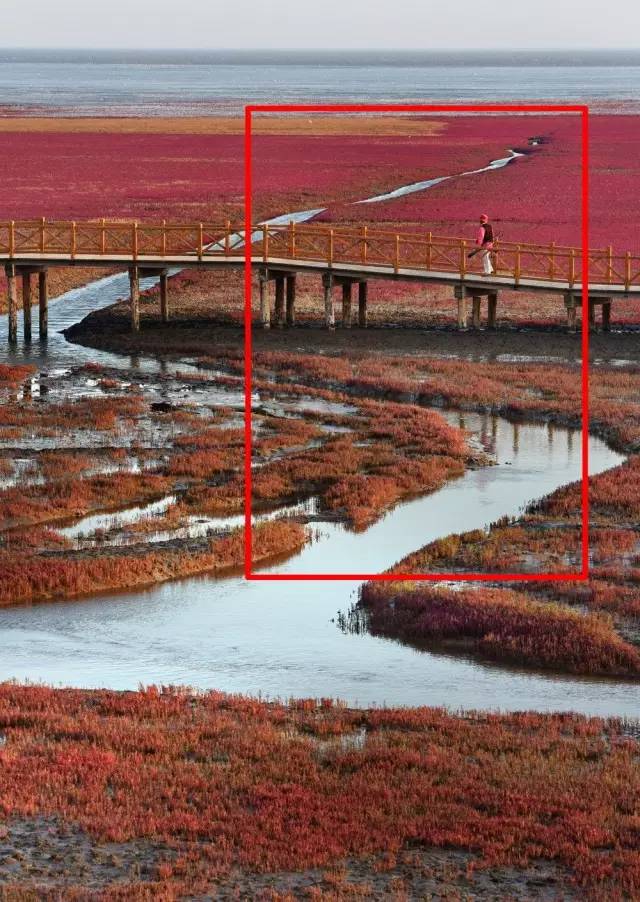 點評:圖片概括的東西較多,上半部的天空和海邊有些空,下半部海灘也顯得不太純凈,裁剪后只表現(xiàn)灘涂的一部分,更干凈、緊湊。