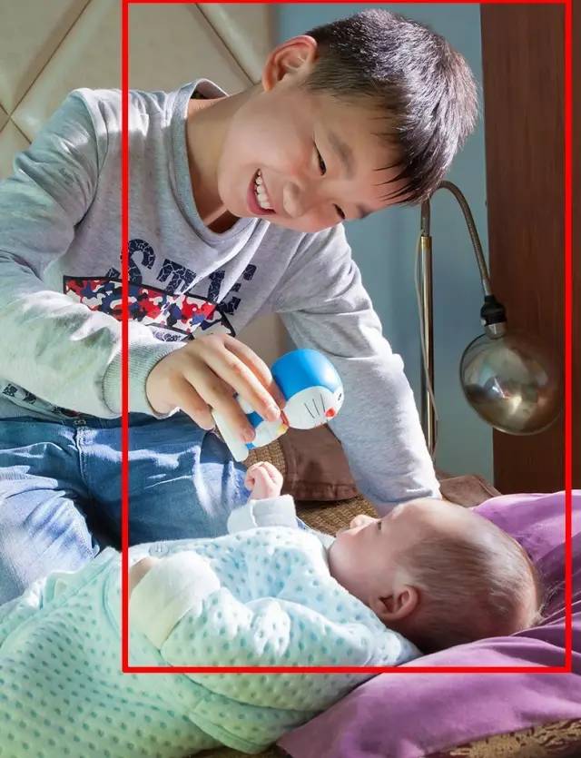 點評:一大一小、一臥一坐、一動一靜形成對比,反射光作為補光打到哥哥臉上,使畫面很生動。但整個畫面構(gòu)圖隨意,如果想突出哥哥,可以稍作裁剪。