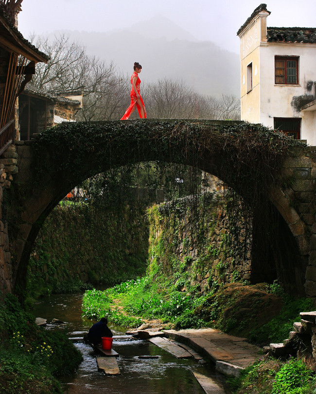 查濟(jì)古村可以看見的似乎只是陳舊破碎的景象,農(nóng)婦在溪水中洗衣,犬寵在巷中慢走,然而,昔日的繁華卻變成今日平靜的農(nóng)居生活。