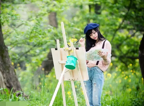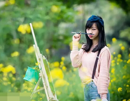 3、高級——畫板,帶著畫板,整個構(gòu)圖就會更豐富,表情一定要夠生動,要展現(xiàn)一個在油菜花地里寫生的文藝狗,但是用畫板的話一定要注意構(gòu)圖,注意畫板擺放的角度和位置。