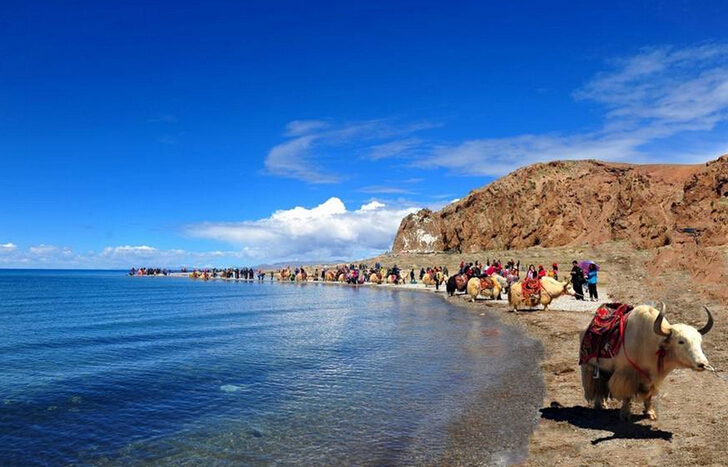 2、到湖邊可以騎牦牛,請客人務必提前講好價格再開始享受高原之寶帶來的愜意,省的與當?shù)夭孛癜l(fā)生不必要的爭執(zhí)。
