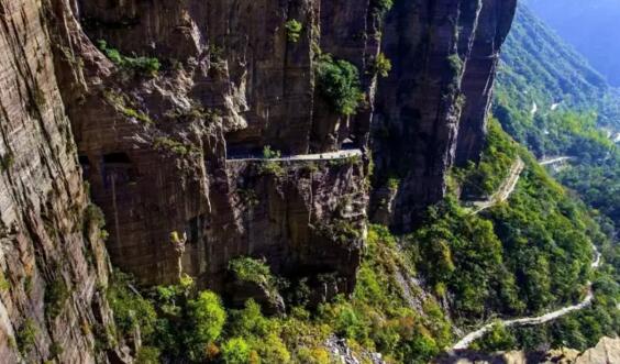 井底村著名的掛壁公路,全長(zhǎng)1500多米長(zhǎng)的“掛壁公路”, 39個(gè)窗口。是井底村人歷經(jīng)14年的時(shí)間,在懸崖峭壁上艱難地開(kāi)鑿而成的。