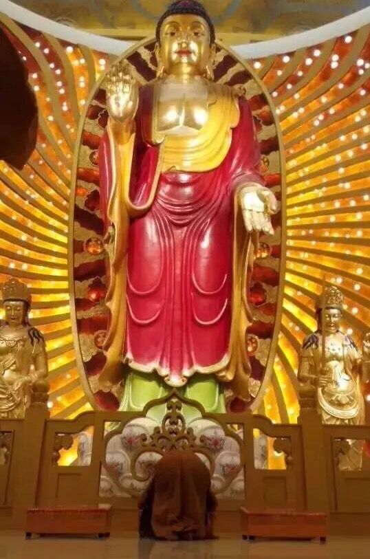二層為禮佛大殿。禮佛大殿內供奉著四尊18米高的橫三世佛與未來佛。靈光寶殿室內釋迦牟尼佛像,采用傳統的琺瑯工藝打造而成,已獲室內最高琺瑯佛吉尼斯(英國)世界紀錄證書。殿內流光溢彩,仿佛來到佛國凈土,是您心靈的升華和洗滌。