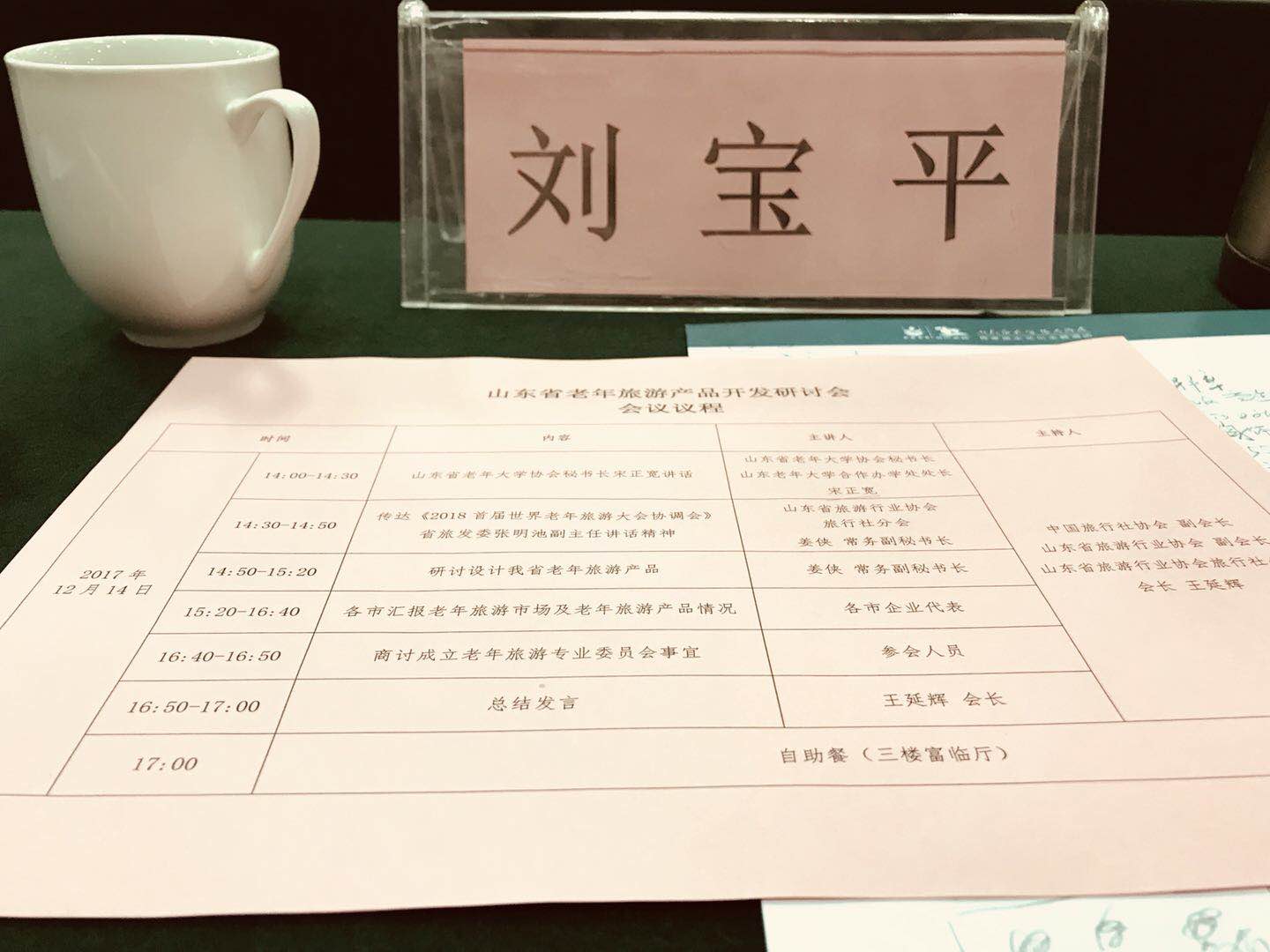 12月14日,劉寶平受邀參加山東省旅游行業(yè)協(xié)會旅行社分會主辦的山東省老年旅游產(chǎn)品開發(fā)研討會,并就切實服務好老年人旅游提供建設性意見。