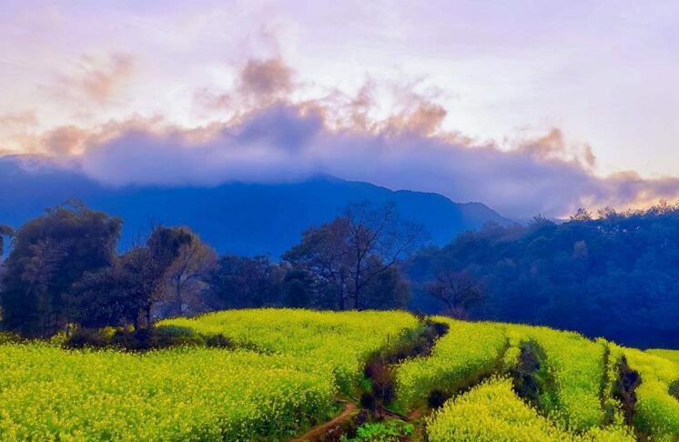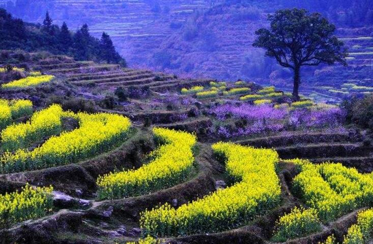 【婺源王牌景點 世界級攝影基地—江嶺】“梯田風光,天上人間”是中國四大花海之一,在海拔千米的高山上,梯田如鏈似帶,層層疊疊,高低錯落,壯麗雄奇。遠眺,白墻黛瓦掩在黃花綠樹間,陣陣云霧飄來,恍若天上人間。古樹,河流,梯田,農舍,山頂人家……如夢如幻的江嶺風光。油菜花層層疊疊,一望無際,中間圍攏著幾個小小的村落,黑瓦白墻的徽派民居夾雜在一片金黃之間,在婺源沒有比這更壯觀而令人驚喜的了、融入其中,置身黃色花海,盡情放松愉悅身心。