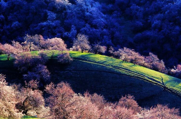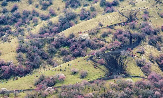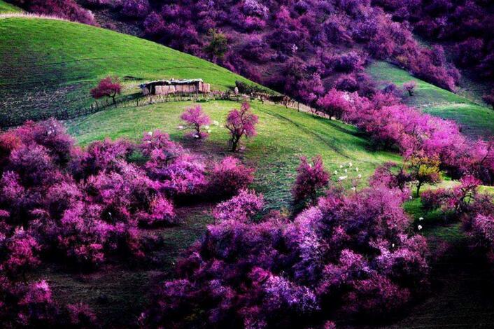 早餐后乘車前往參觀【吐爾根杏花溝】。(賞花時間根據當地的氣候和天氣條件決定,敬請諒解)每年四月份起,伊犁河谷開始進入一個美麗浪漫的季節,山上、草原上的果花、草花次第盛開,美不勝收!最先盛開的就是野杏花。那個季節野杏花綿延十幾公里,粉紅的、雪白的杏花把一個個山頭妝扮起來,牛羊似珍珠灑落在花林間、草坡上。最震撼是這種自然、原生態的壯美,一個花海的世界、一個迷人的仙境!抵達新源用晚餐,晚餐后入住酒店。