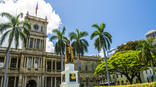 早餐后,參觀【珍珠港公園】,珍珠港是第二次世界大戰期間美國艦隊受到轟炸之軍事港口,之后參觀市區,【卡美哈國王銅像】(外觀)、美國國內唯一的皇宮-【夏威夷皇宮】(外觀)、代表夏威夷形象的【州政府】(途經)、【市政廳】(途經)等。