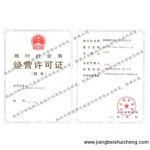 首先要看“一證、一照”是否齊全,即工商部門頒發(fā)的營(yíng)業(yè)執(zhí)照和旅游部門頒發(fā)的旅行社業(yè)務(wù)經(jīng)營(yíng)許可證,且年檢合格。若是出境游,還需進(jìn)一步確認(rèn)其經(jīng)營(yíng)范圍,查看是否具備出境游的經(jīng)營(yíng)資格。