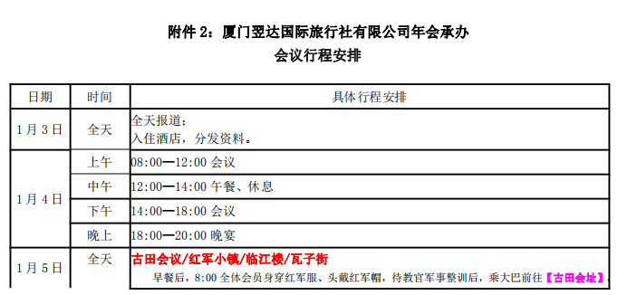2、會議時間:2019 年 1 月 3 日→6 日。其中 3 號報到,4 號年會會議,5、6、號(6 號下午 5 點結束行程考察,不含 6 號晚餐及 6 號晚住宿)古田會議經典路線考察(含古田會址、中復村、松毛嶺等)。