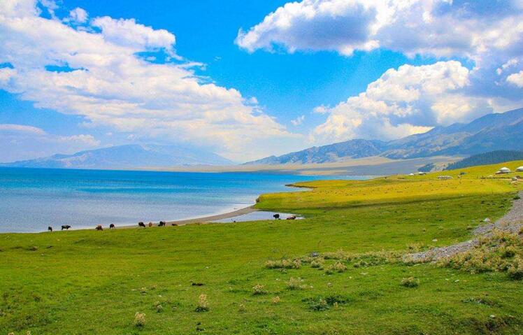 早餐后乘車赴花城—伊寧,途中游覽高山湖泊【賽里木湖】(含環(huán)湖車,游覽時(shí)間約40分鐘) 湖面海拔2073km,是新疆海拔高、面積大的高山湖湖水浩瀚無垠、湖濱草地,綠高盈尺,途中車觀【果子溝】,素有伊寧第一景之稱,風(fēng)光峻奇,山花爛漫,途中欣賞因其浪漫的色彩和芬芳的花穗,素有“芳香藥草之后”美譽(yù)的【薰衣草王國】,晚抵清水河入住酒店。
