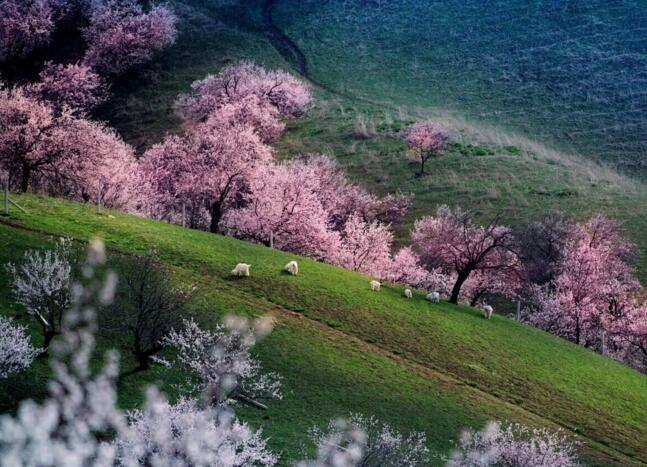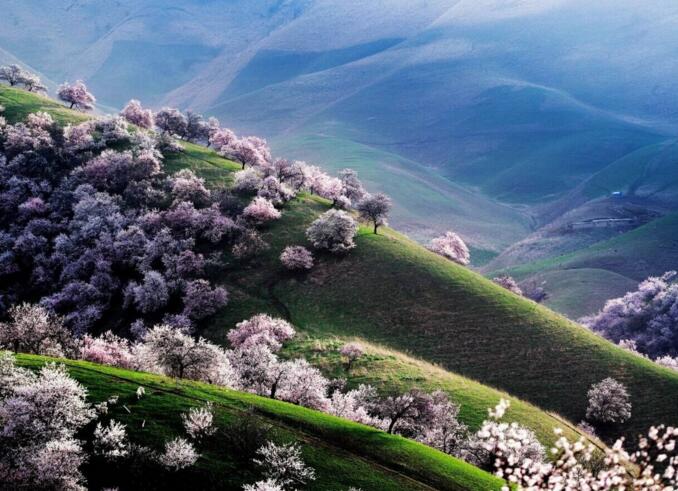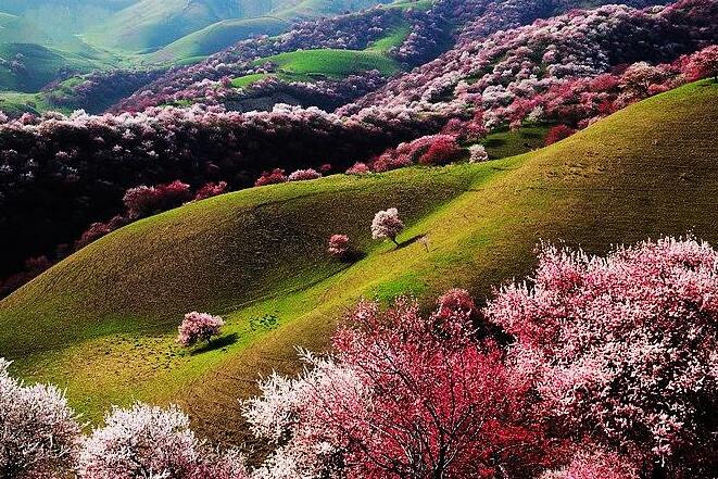 早餐后乘車前往參觀【吐爾根杏花溝】。(賞花時(shí)間根據(jù)當(dāng)?shù)氐臍夂蚝吞鞖鈼l件決定,敬請諒解)每年四月份起,伊犁河谷開始進(jìn)入一個(gè)美麗浪漫的季節(jié),山上、草原上的果花、草花次第盛開,美不勝收!最先盛開的就是野杏花。那個(gè)季節(jié)野杏花綿延十幾公里,粉紅的、雪白的杏花把一個(gè)個(gè)山頭妝扮起來,牛羊似珍珠灑落在花林間、草坡上。最震撼是這種自然、原生態(tài)的壯美,一個(gè)花海的世界、一個(gè)迷人的仙境!抵達(dá)新源用晚餐,晚餐后入住酒店。