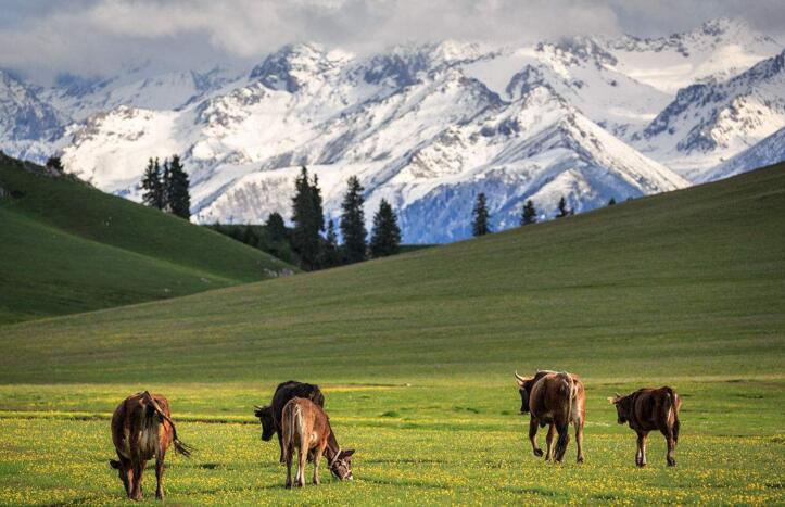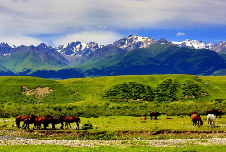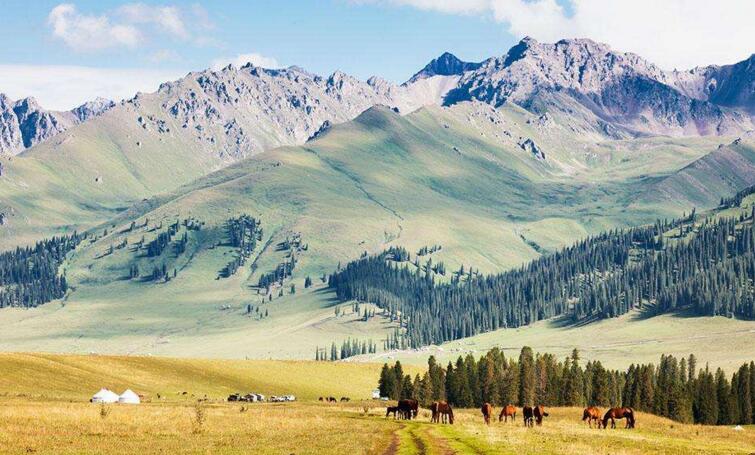 早餐后,前往特克斯。新疆伊犁谷地西的特克斯,位于昭蘇縣境內(nèi),是新疆最美的草原,這里的哈薩克族、柯爾克孜族風(fēng)情獨(dú)特,山清水秀,人文濃郁。特克斯縣縣城是中國唯一的【八卦城】,建筑風(fēng)格獨(dú)特,后游覽【喀拉峻草原】位于特克斯縣南喀拉峻山,距縣城直線距離約30公里,有簡易公路相通。海拔1600~2800,喀拉峻系哈薩克語,意為"黑色莽原"。喀拉峻草原風(fēng)景獨(dú)特,草豐林茂,主要指闊克蘇河以東,喀甫薩郎河以南,以喀拉峻山為主體,南接瓊庫什臺,包括瓊庫什臺,克什庫什臺和庫爾代峽谷,面積約759平方公里。喀拉峻草原是典型的山地草甸類型草原,喀拉峻草原地勢起伏和緩,視野開闊,草原5~9月碧草茵茵,盛夏之際雨水豐富、日照充足,各種野花恰似點(diǎn)點(diǎn)繁星開遍山野。夏季來到喀拉峻草原,如同步入花的海洋,暑氣頓消。晚住昭蘇是天馬——伊犁馬的故鄉(xiāng)。