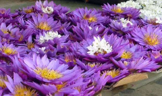 在這個全民信仰著佛教的國度,自然也把睡蓮奉為國花,一如這里的人民,帶著憂郁和冷靜的佛教色彩。她象征著純潔、真理和自律,似乎和佛教的本意不謀而合。