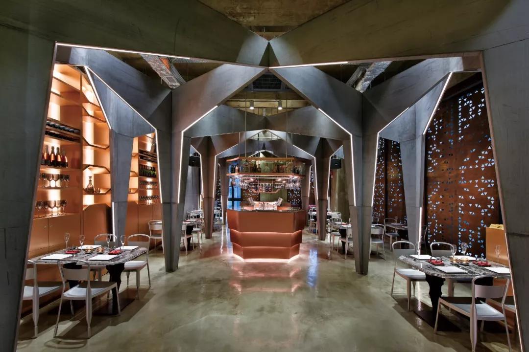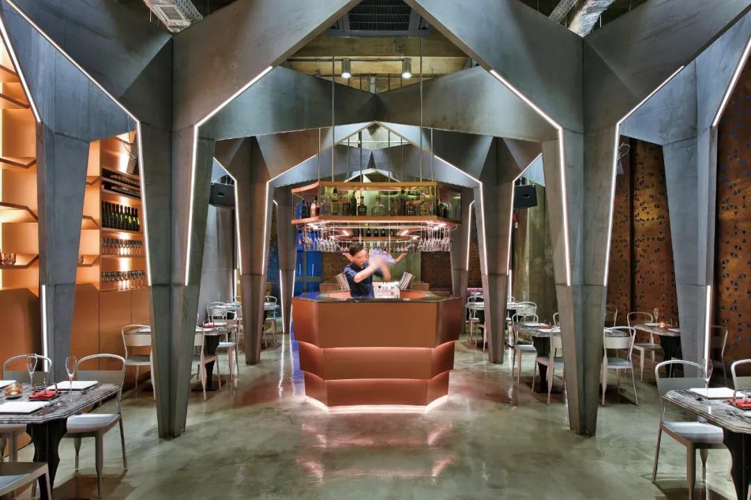 這種風格的酒吧設計,主要是用金屬質感散發出耀眼真實的光芒,唯美神秘的哥特穹頂,蒸汽時代的頹廢與吶喊,瞬間打動了人們。張揚不羈的個性、感官刺激享受,優美別致的意境,舒適激情的放松,這樣的氛圍下,人們不由得舒展疲憊的神經、釋放囚禁的欲望。