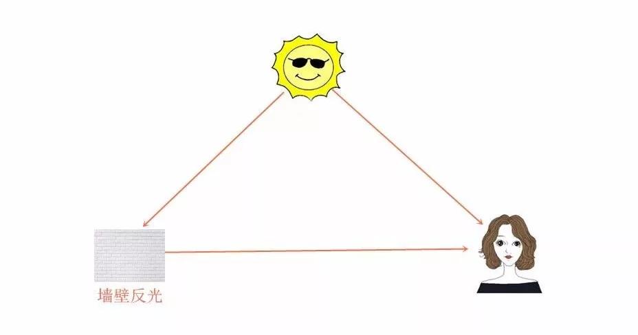但多數人是沒有這些專業設備的,這時候,就可以利用周圍環境,來給模特臉部補光了,例如白色墻面的反光。