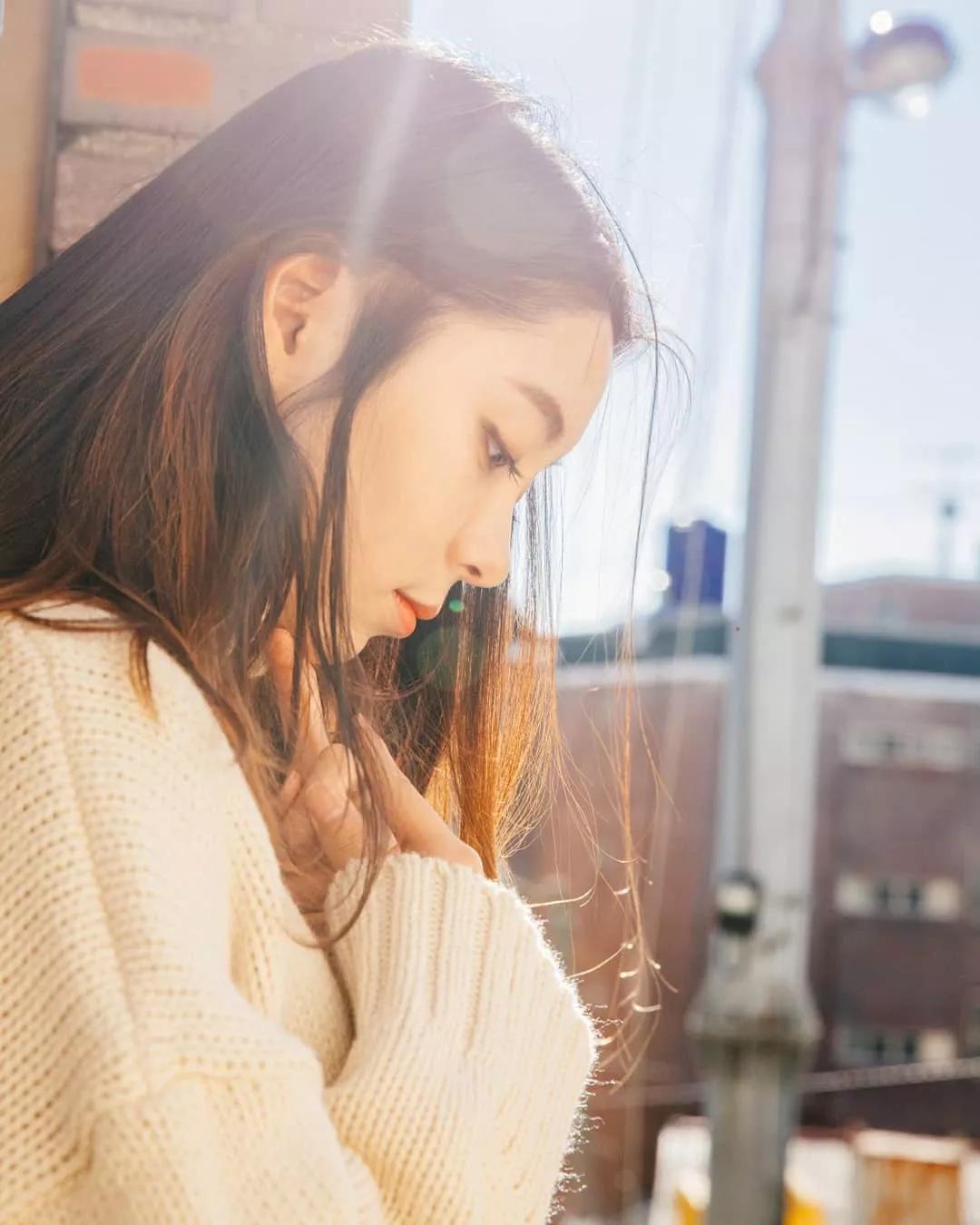 讓妹子的頭部遮擋身后太陽的部分,或者模特用手遮擋部分光線,減弱逆光的強度,畫面更有朦朧的意境。