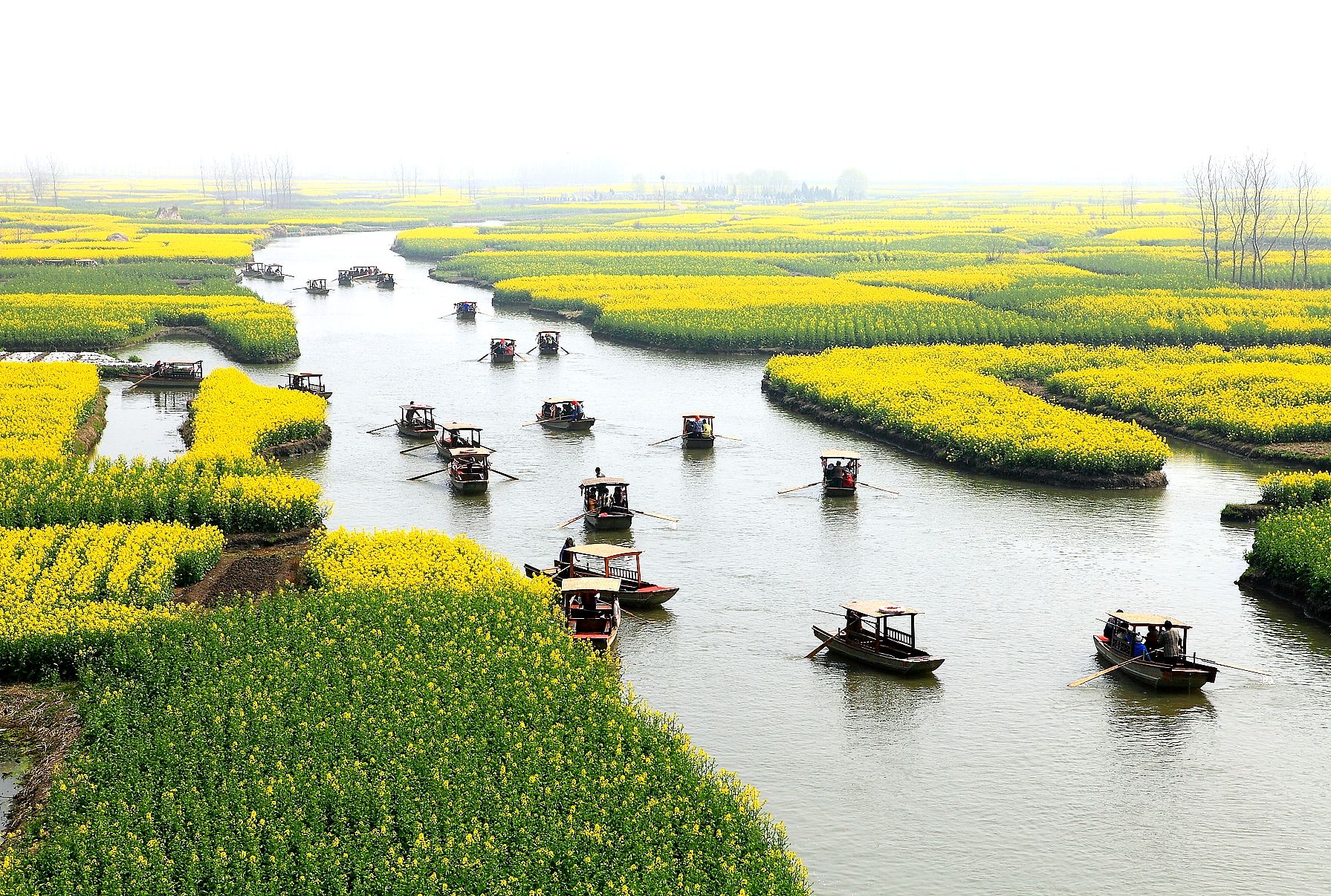 【垛田油菜花】千百垛田漂浮于水中,云蒸霞蔚,煞是壯觀;江蘇興化的油菜花,開到荼蘼;在這里,花垛田的情調不輸威尼斯水系的復雜,每一處的轉角,都是迷途在花田里的自說自話;2011年經過網絡評選,興化花海入選中國最具影響力油菜花海第一名;與享譽世界的普羅旺斯熏衣草園、荷蘭郁金香花海、京都櫻花并稱,躋身全球四大花海之列。