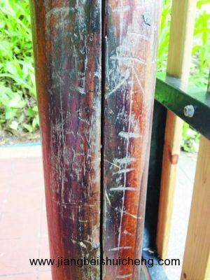 走進光孝寺和六榕寺,白墻綠瓦格外寧靜。但寺內的千年古樹卻遭殃了,在光孝寺觀音臺旁邊的竹群中,幾乎找不到一棵干凈的竹子。每一顆竹子上都刻有名字、×××與×××相愛到永遠、平安等字眼。而在光孝寺放生堂附近的一棵千年菩提樹上,也有不少傷痕。六榕寺的清水磚墻平均不到一平方米的地方就有約兩三處涂鴉,由于寺廟有定期清理,因此記者看到一塊塊白色的痕跡。光孝寺寺內的工作人員告訴記者:“佛寺比較森嚴,游客不敢隨便在建筑上刻畫,但在樹木上刻畫就多了,我見到的大多都是年輕男女所為。”