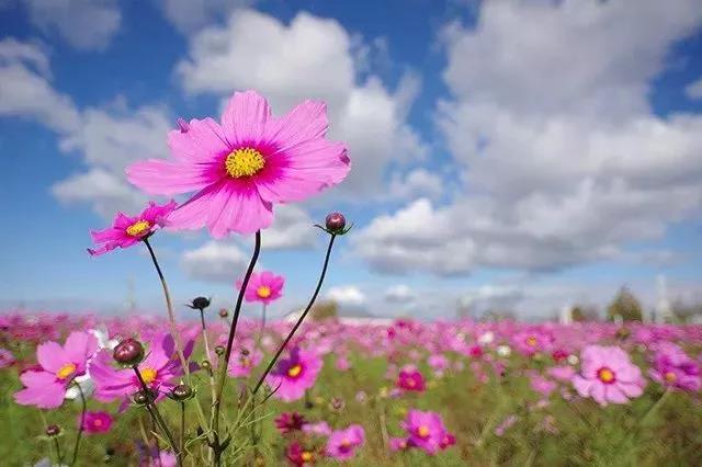 除了視野寬廣之外,廣角鏡頭的另一特性就是畸變比較明顯,會讓近處物體和畫面邊緣的物體產生明顯的拉伸。針對這一特點,你可以強化透視,產生一些特殊的畫面效果,增強視覺沖擊力。比方說,你可以用廣角鏡頭,從根部對花卉進行貼地仰拍。廣角鏡頭的畸變,在客觀上強化了透視效果,讓小花看起來顯得很高大。