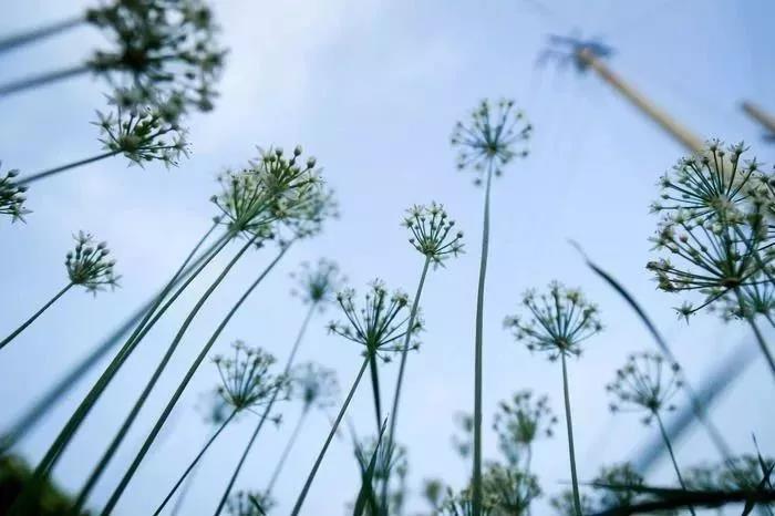 以天空作為背景拍攝,需要注意控制曝光,一定要以花朵為基準控制曝光,寧愿讓天空過曝些也不要讓花朵本體發黑。當然,如果天空真的特別亮,過曝的程度比較嚴重,那就需要你擴大花朵本身的畫面比例,拍攝特寫,以減少過曝部分的面積。