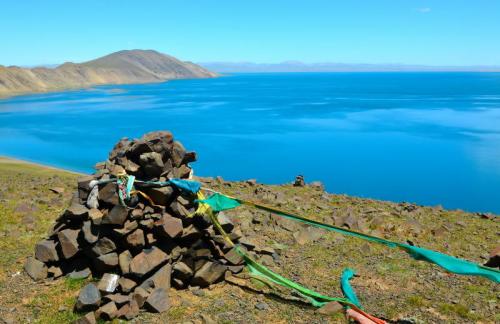 【瑪旁雍措】是世界上多個宗教認定的圣湖,每年印度、尼泊爾和西藏的香客紛到此朝圣沐浴以求功德。基烏寺旁邊的一個小山坡是拍攝瑪旁雍措的絕佳位置,湖水水色深藍,依舊清澈明凈,狂風吹過,經幡隨風蕩漾;而遠處的神山就安靜的沐浴在夕陽中,夜宿塔爾欽。