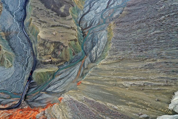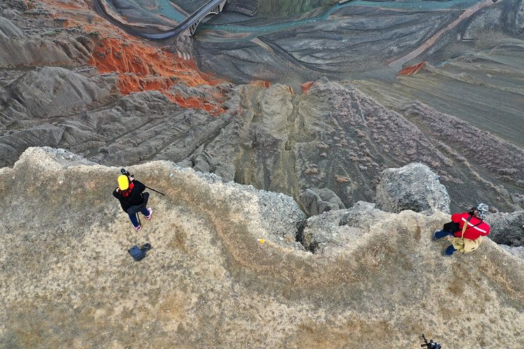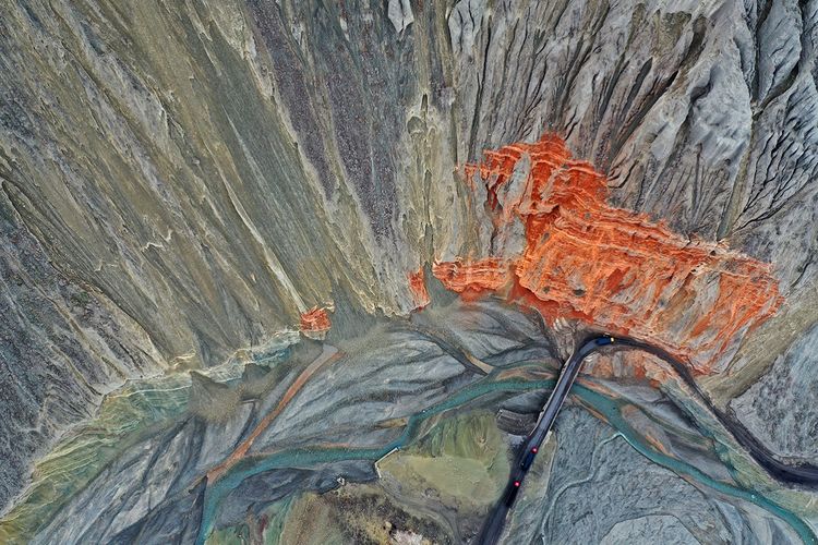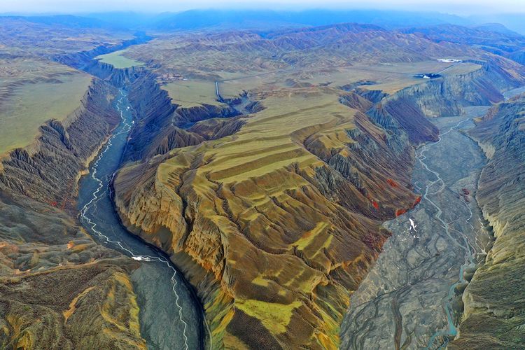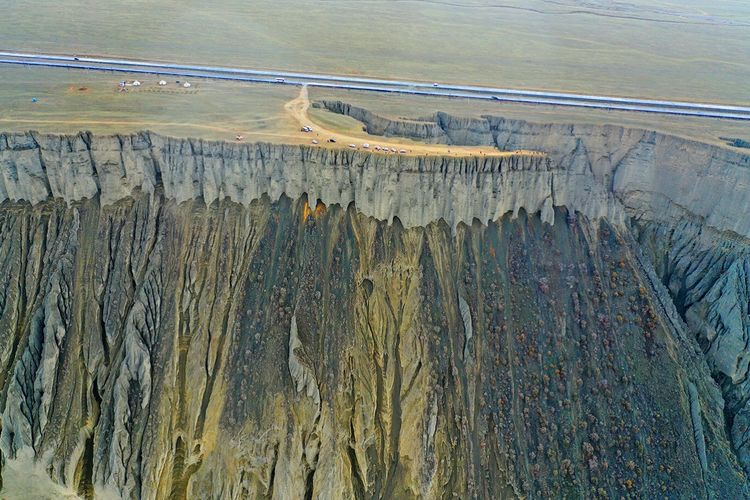 此處還未開發為景點,本地人知道也不多,偶有自駕游人,拍攝危險系數較大,站在山頂往谷底看,背脊發涼。此照片系用無人機拍攝。