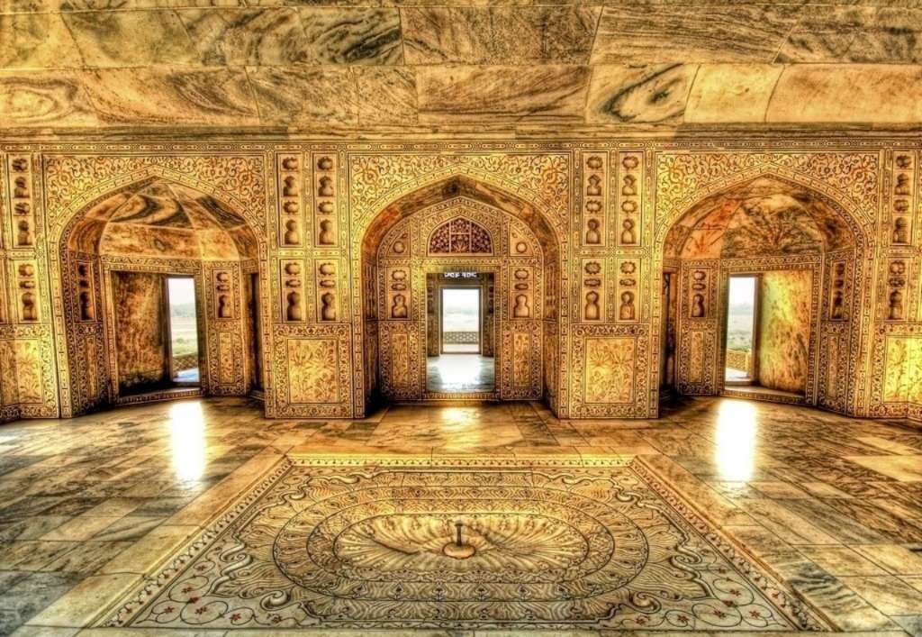 午餐后驅車前往阿格拉堡,它距泰姬陵約 1.5 公里,全部采用紅砂巖建造而成,故又稱紅堡,與首都德里的紅堡齊名。這座方圓 38 萬平方米的宮堡,外形非常雄偉壯觀,城內的宮殿,雖經歷漫長的歲月,多已失修,但畫梁和墻壁上精巧的雕刻與設計,仍隱約保存著昔日富麗堂皇的風貌,于 1983 年被列入世界遺產名錄,夜宿阿格拉。