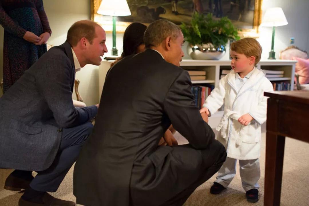 就連奧巴馬也一同蹲下與喬治小王子聊天。確實,蹲著與孩子對話,更利于溝通。