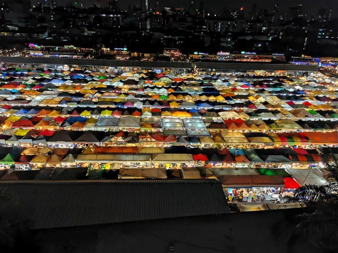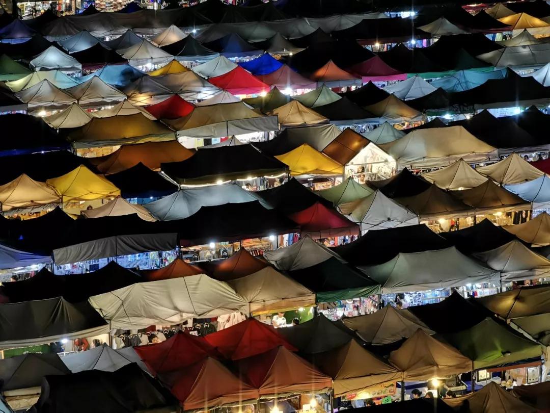 不同色彩的帳篷在燈光下變得絢麗多彩,畫面內容豐富