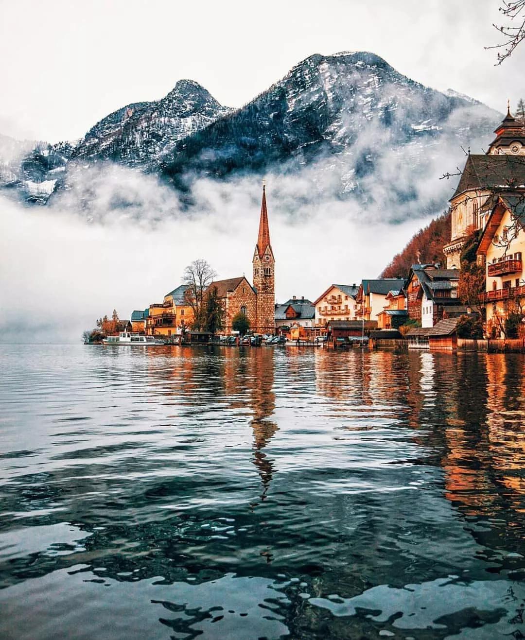 遠景拍攝,容納的景物范圍比較大,畫面里有山有水,有聳立的建筑,也有茂盛的植被。