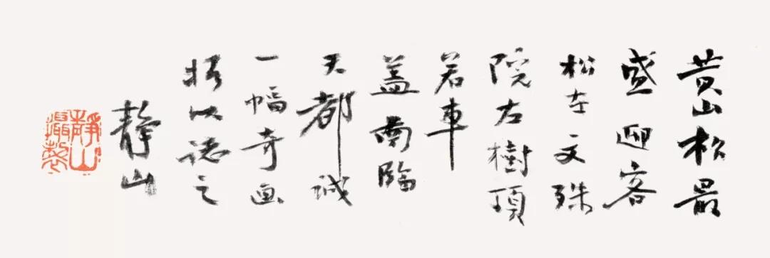 黃山松最盛,迎客松在文殊院左,樹頂若車蓋,南臨天都,誠一幅奇畫,攝以志之。