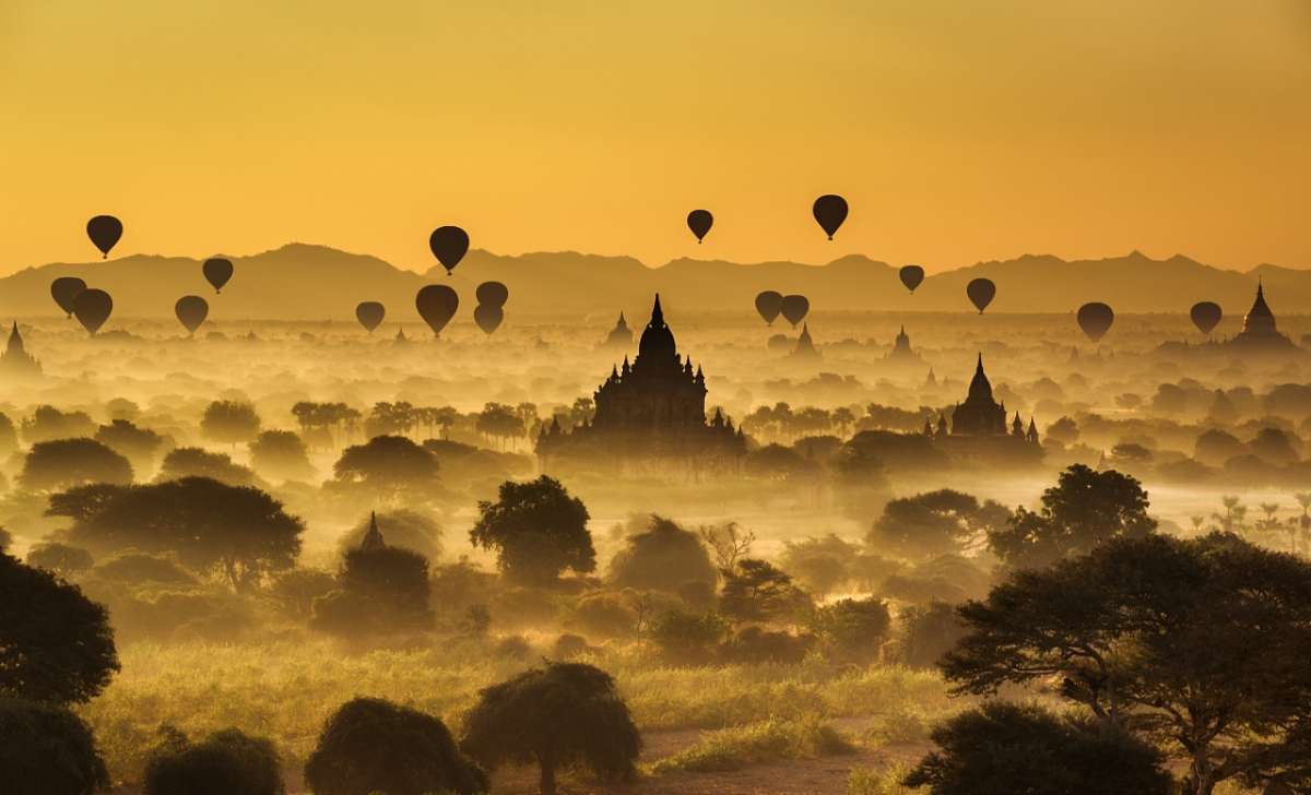 清晨5點左右【蒲甘上塔看日出】(約60分鐘,此屬于贈送項目,如遇天氣原因無法觀看,費用不退)感受一座歷盡滄桑的古城迎風而立,歷史變遷和自然災害已使它的昔日輝煌不再,但那2000多座大大小小見證著歷史的佛塔依舊在晨曦和日落的沐浴下,閃耀著金色的光滿的古城——蒲甘;
