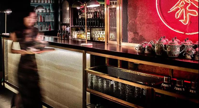 被廣東話的綠色霓虹燈點燃,從豪華的紅色窗簾反射出來,創造出一個飽和的Nicolas Winding Refn電影房間,在華麗的設計之中,茶室之旅中有很多新奇之處。菜單印在報紙上。有來自臺北,新加坡和香港的老式乙烯基唱片的自動點唱機出現60年代的曲調。這里有著中國飲料,被稱為“中國伏特加”,還能找到與花生和枸杞的新奇搭配。