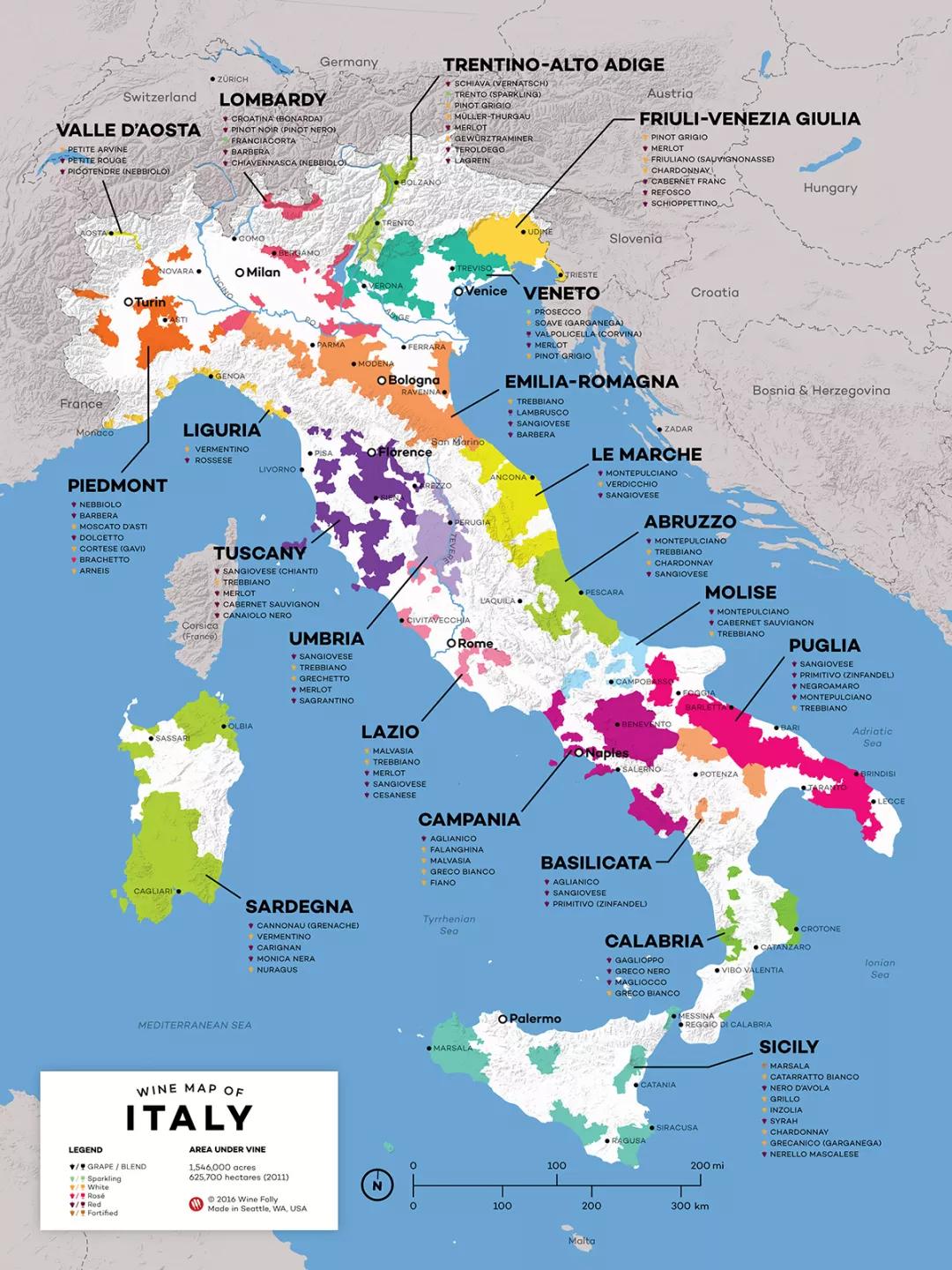 現(xiàn)時(2019年2月),意大利全國一共有118個IGT產區(qū)。