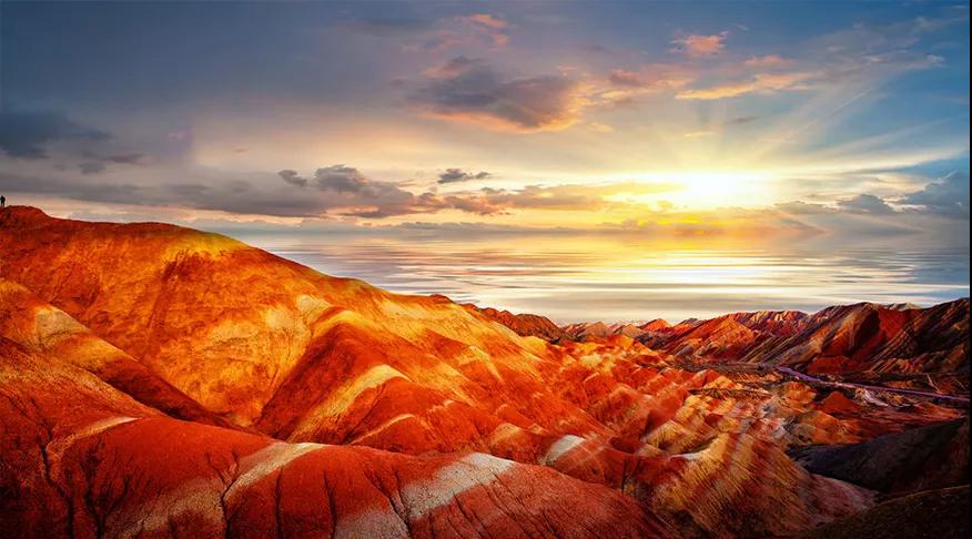 游玩過后前往張掖 [ 丹霞地質(zhì)公園 ] ,這里的自然景觀得天獨厚,是中國丹霞地貌發(fā)育最大最好、地貌造型最豐富的地區(qū)之一。景區(qū)還是張藝謀的電影《三槍拍案驚奇》、姜文執(zhí)導(dǎo)的電影《太陽照常升起》、知名電視劇《神探狄仁杰》的外景地,2005年11月由中國地理雜志社與全國34家媒體聯(lián)合舉辦的“中國最美的地方”評選活動中,當(dāng)選為“中國最美的七大丹霞”之—,如果天氣晴好,在這里可以觀賞到一場唯美的落日盛宴。感受落日的余暉落在起伏的丘陵上,晚霞般的大地與落日交相輝映,見慣了城市中的鋼筋混凝土,此時不由的心神也會感到空曠了;