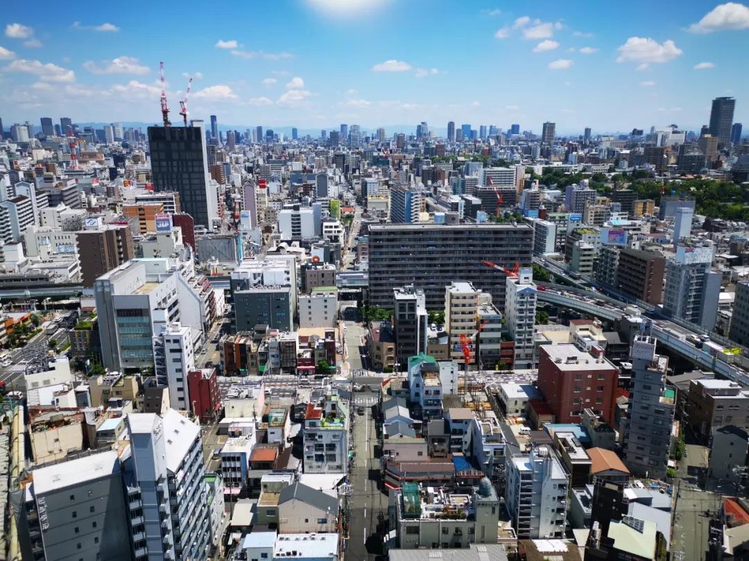 遠眺大阪市區。大阪是眾多世界聞名的日本制造業企業誕生地,大學和研究機構云集,吸引眾多海外產學合作機構進駐。近年來,綠色創新、生物生命科學、機器人等新產業大批涌現。