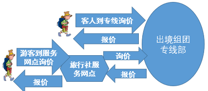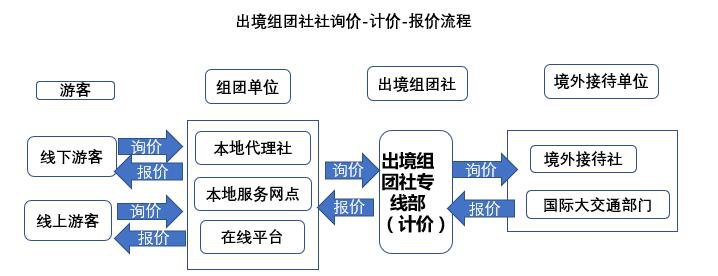 出境組團社服務網點(代理旅行社、在線平臺)對游客報價=出境組團社報價+服務網點(代理旅行社、在線平臺利潤)。