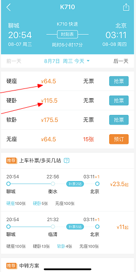 1、最省錢:火車硬座64.5+北京地鐵28=92.5