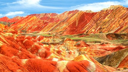 后乘車赴【七彩丹霞地質(zhì)公園】(游覽時間約2.5小時),張掖七彩丹霞是中國發(fā)育最完好、造型最豐富的丹霞地貌,張掖丹霞面積廣闊,形態(tài)生動,惟妙惟肖,窗欞狀、宮殿式、泥乳狀、陡斜式,廊腰縵回、檐牙高啄、各抱地勢、壁峭柱聳、粗獷偉岸、巧奪天工,堪稱人間奇景;