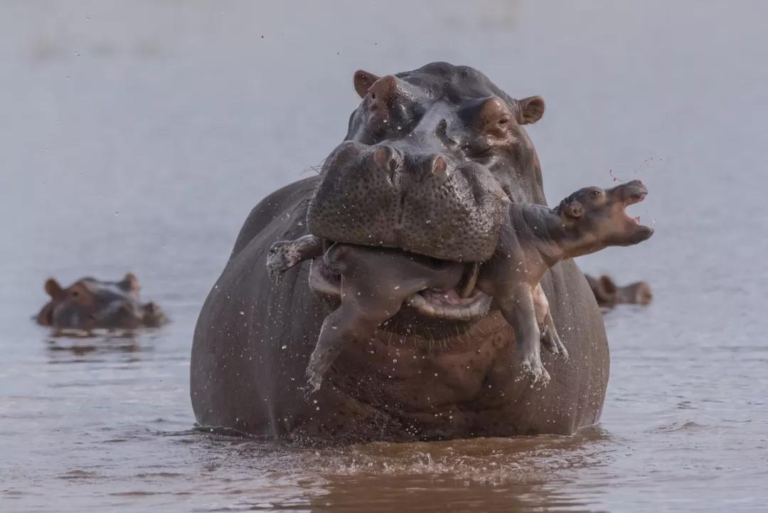 津巴布韋卡里巴湖的淺灘上,一只才出生幾天的河馬寶寶正享受著媽媽無(wú)微不至的照顧,這時(shí),一只巨大的雄獸突然直直地向這對(duì)母子襲來(lái)。它先是追逐了一會(huì)兒母親河馬,在追逐中趁母河馬不注意一口咬向她的幼崽,顯然是一早就計(jì)劃好了的。一旁悲痛欲絕的母河馬全程目睹了這一切。