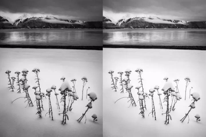 白平衡的變動會影響到黑白照的對比度和灰度層次,只不過這種影響和變化不太明顯,需要用后期軟件大幅調整色溫滑塊,才能看出效果。