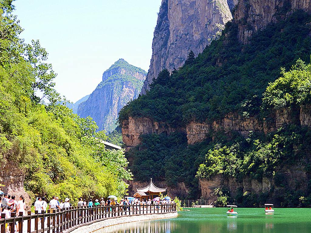 沿水路游覽七色相交、如玉如碧、如夢如幻、眼入湖底13米的高山平湖—【通天湖】【神龜湖】;高170多米,長200多米的華夏第一屏—【石屏山】;林中小島、獼猴成群的太行第一寨—【獼猴寨】(注意安全,不要逗猴);如玉如瀑—【三疊瀑】;深山情趣多—【戲水譚】;疑似長河落九天—【天河壺口】;一簾幽夢—【水簾洞】;在千尺澗碼頭集合,船游“北方小三峽”之稱的【千尺澗】乘坐千尺澗高峽平湖游船游覽峽谷(游覽時間約2小時):千尺澗最深處200多米,最寬40米,最窄處7米。